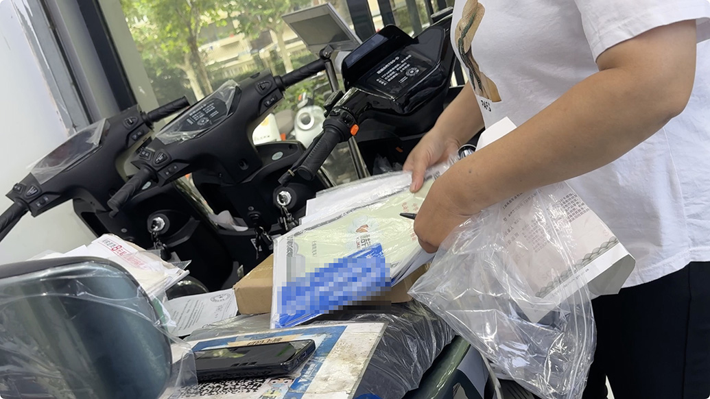 在雅迪电动自行车店,店员向记者展示了当天的车牌。她说,只要给出信息,他们就可以帮忙免费领证,领证后再解速。