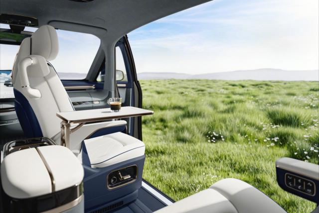车辆采用单色 Microfiber 超级纤维装饰,提供 Soft Nappa 全粒头真皮座椅,全系均是 5 座椅布局,配置可移动中岛(带伸缩式小桌板)、汽车冰箱,后排娱乐屏,舒适配置相当高。