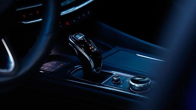 CT5 有时尚和运动两种外观设计,增加了日金和暗夜紫色配色。新车在凯迪拉克的多层次几何钻石切割表面持续存在,其大灯采用流光飞翼照明。经典的直列星光矩阵大灯尺寸更大,造型更独特,还有 LED 流水转向灯带,动态弯道照明,防眩目远光。