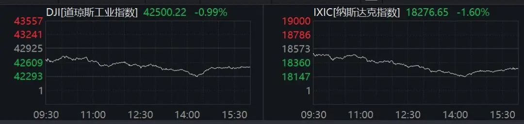 道指、标普下跌近1%,纳指下跌1.6%。