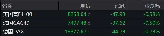 三大欧洲股指全线收跌。