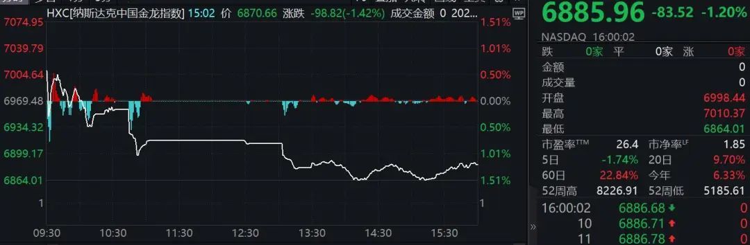 欧美股市一夜之间全线下跌,中概股下跌。
