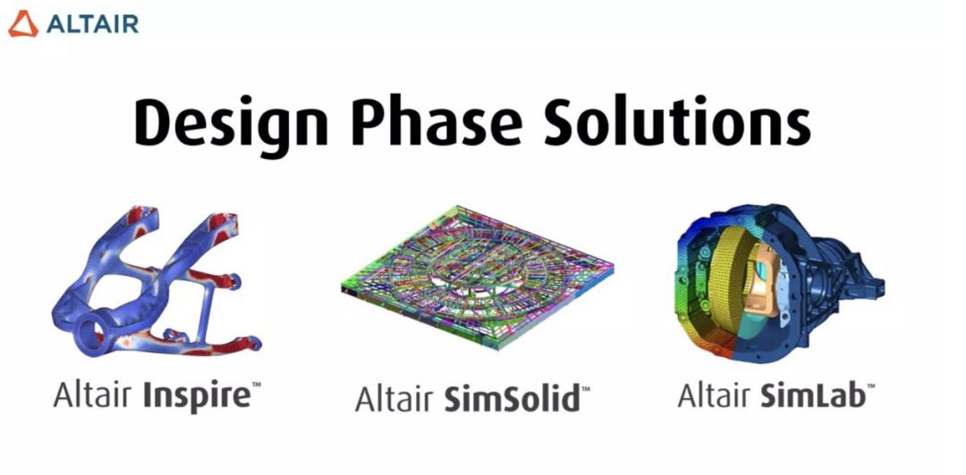如上图所示,这个阶段的解决方案涵盖了Altair Inspire、Altair SimSolid和Altair SimLab。