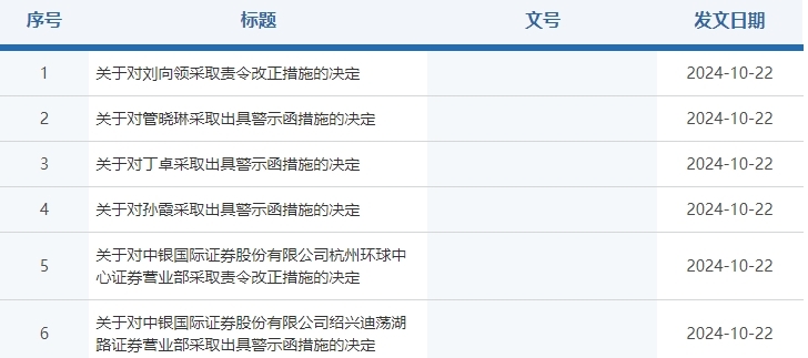 连续收到六张罚单!中银国际证券的许多相关人员被警告