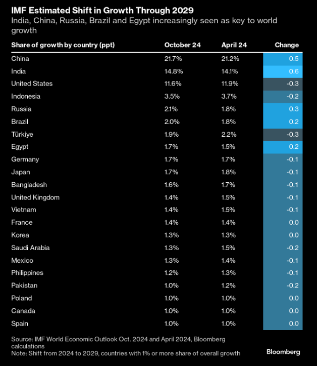 到2029年,印度将占全球增长的近15%,这是全球增长的另一支主力军。