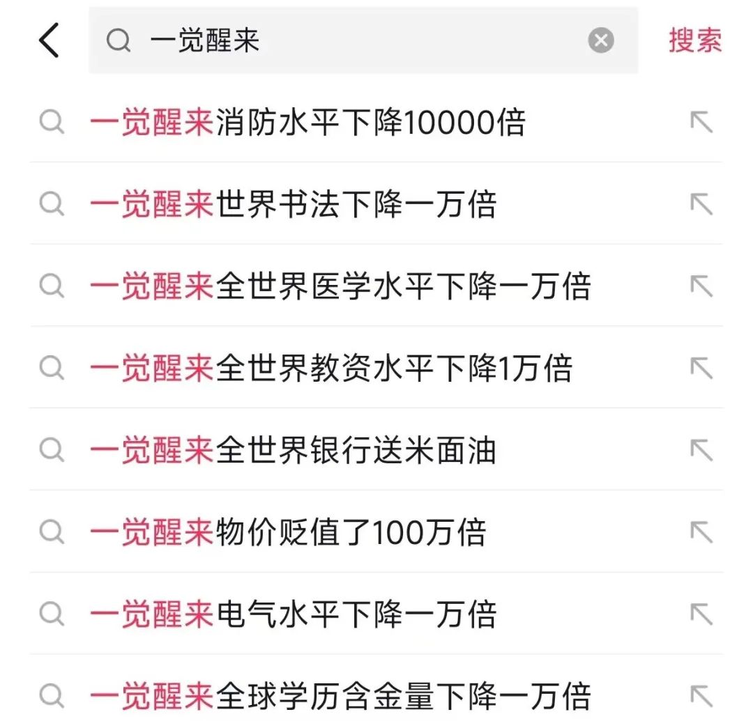 在短剧市场上广泛复制“醒来后,全球XX已经退了3000年”这个主题,就是这种趋势的一个鲜明例子。在这个主题下,出现了《全球厨艺倒退3000年》、“物价贬值一万倍:我成了世界首富”、“文坛倒退三千年,我成了大文豪”、许多有显著热度的作品,如《全球降智我成了天才》。