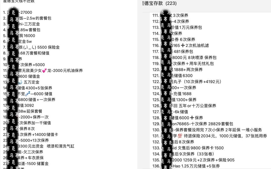 第二类是拖欠充值权,充值权分为现金充值和代金券抵押。比如有的车主被拖欠5000元充值,加上7次维护,店内有60多张代金券没有核销,价值几万元。