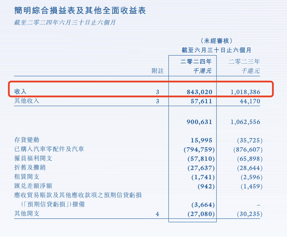 G.A.2024年中期控股有限公司报告显示,上半年G.A.集团累计收入约8.43亿港元,比去年同期减少17.22%。在这些人当中,汽车销售额约为5.69亿港元,比去年同期减少19.9%;与去年同期相比,损失约为1823万港元,损失约为378.4万港元,损失同比进一步扩大。