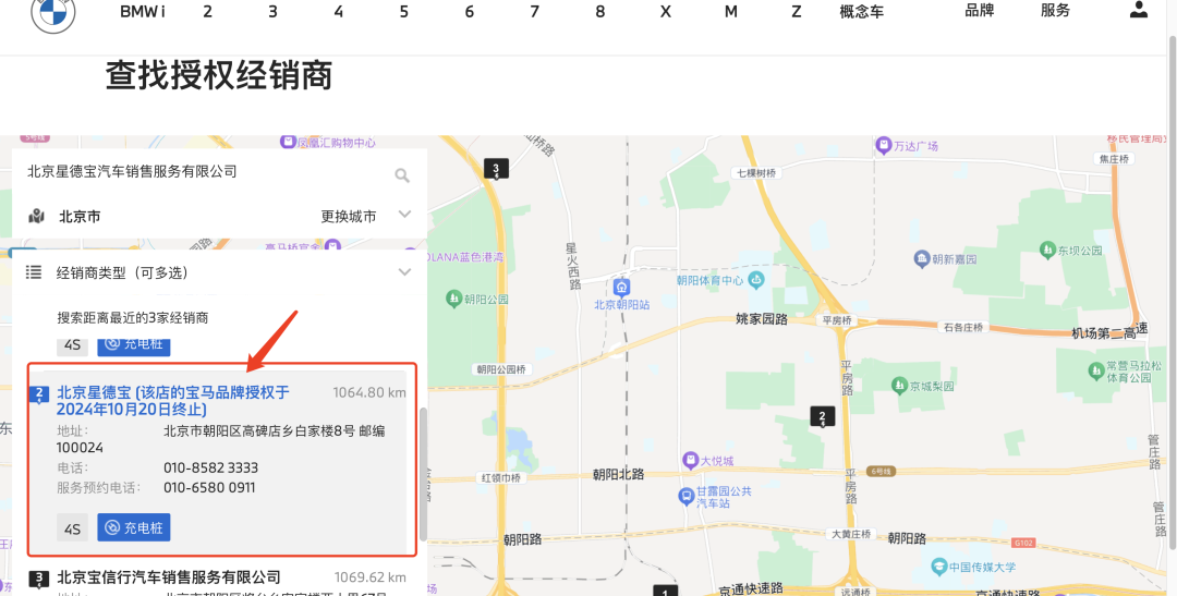 记者发现,在宝马官网的权力经销商名单上,北京星德宝确实已经被停止授权。