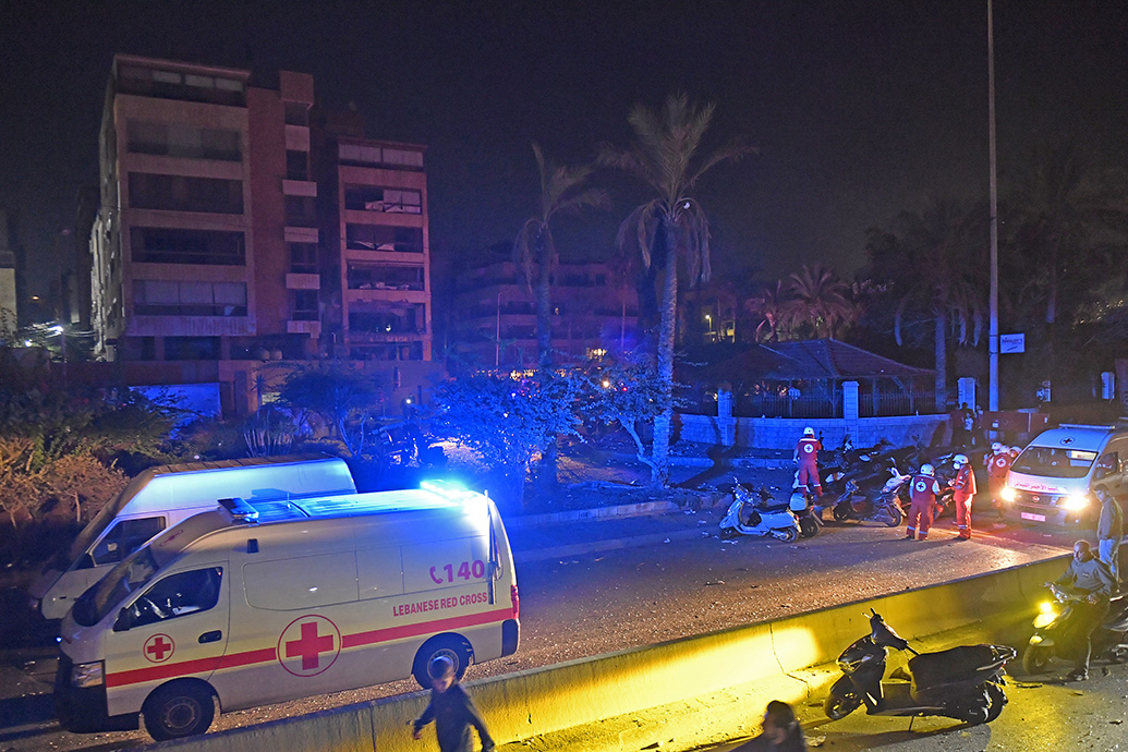 2024年10月23日,黎巴嫩贝鲁特南部,黎巴嫩医疗队在以军袭击吉那社区后到达。