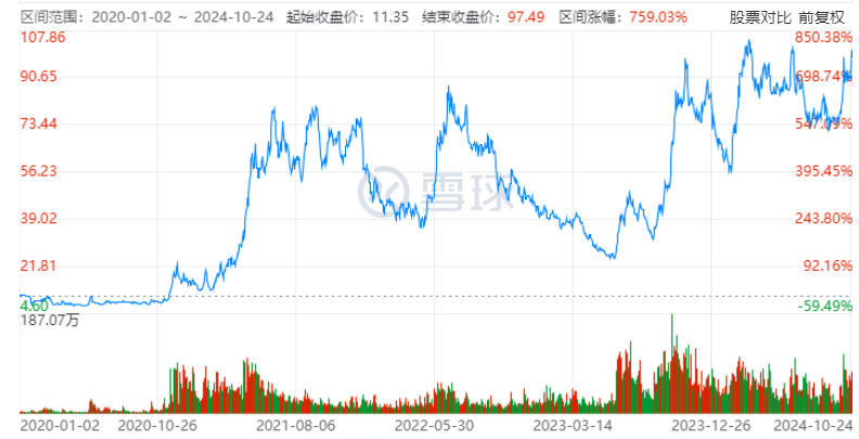 ▲近年来,赛力斯股价迅速上涨。照片来自雪球。