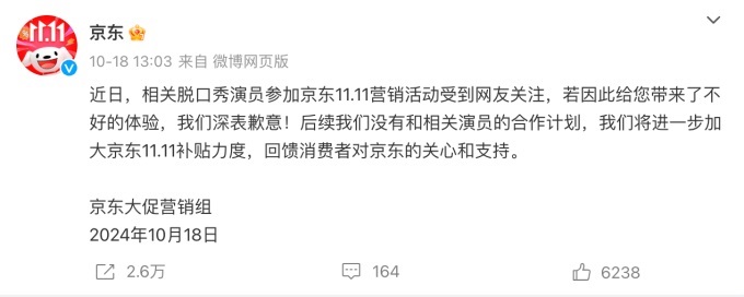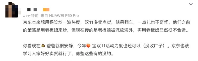 京东邀请了被称为“冒犯男性”的杨李参加双11营销活动,这显然激怒了大量的男性消费者。他们在京东商店和社交媒体平台上表达了不满,并被怀疑引起了退款和退款会员的抵制。对于“请错”发言人,有些人质疑京东故意炒作,有些人责骂京东此举“鸡贼”,不仅想要交通,而且不愿承担被吃掉的结果。