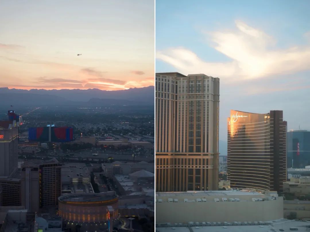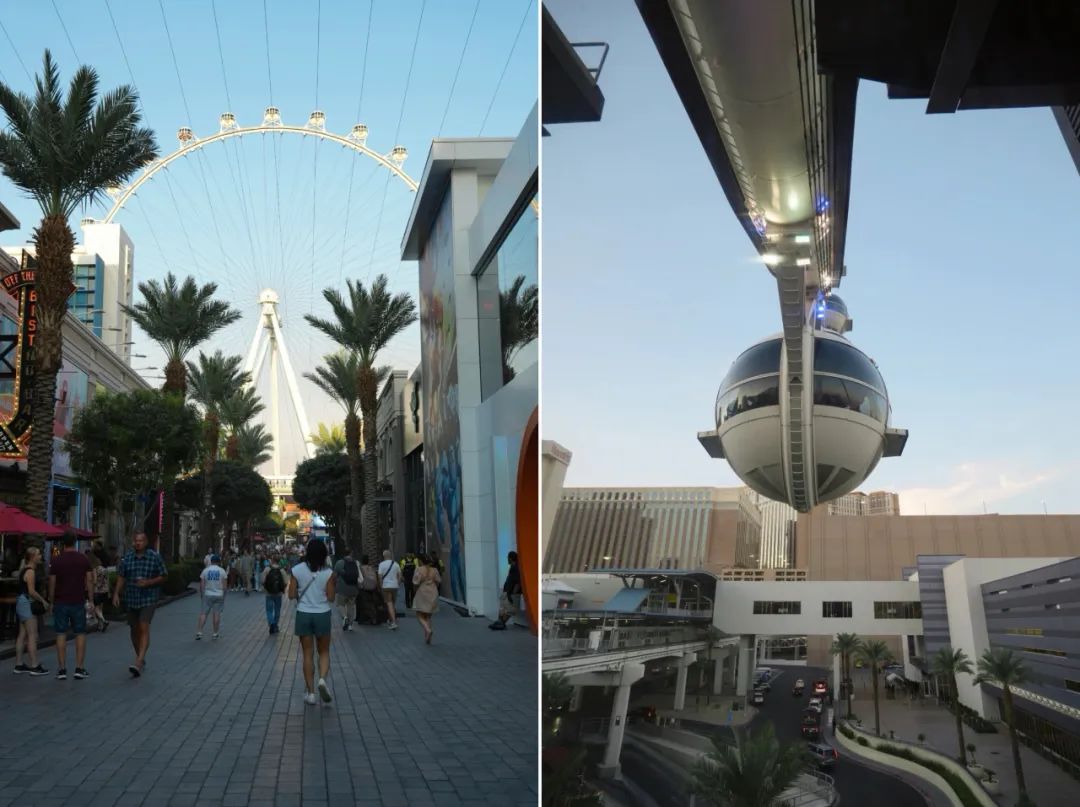 欣赏新建的大球,以俯瞰城市的美景。 Sphere 外表,我去坐了 High Roller 摩天轮。这是一个极好的观景制高点,位于大路北部。由于游客较少,原本可以乘坐合同 20 人类的箱子,只有我们四个人。其中一位外国小姐姐因为恐高,一直坐着不敢动,真不知道她的男友是怎么想的U0001f92d。坐摩天轮前,会有一个在绿布前拍照的阶段,下来的时候工作人员会把你挖出来。 P 在几种不同的背景下,是否购买照片取决于个人的意愿。