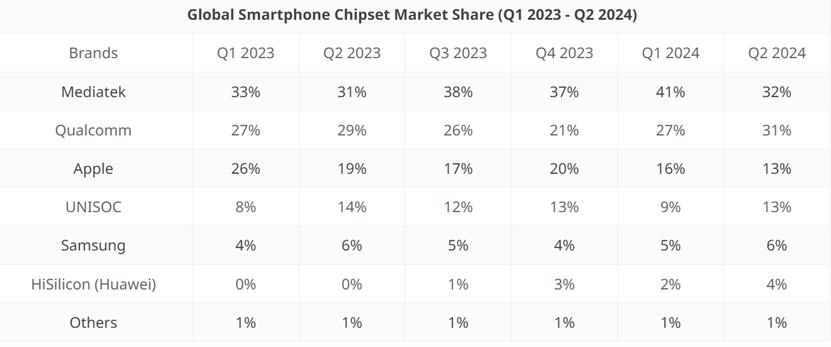 根据Statista的数据,早在2020年第三季度,高通的市场份额就开始低于MTK。到2022年第四季度,高通的市场萎缩到19%。直到Q2,高通在全球手机市场的份额才恢复到31%,但与MTK的32%仍然存在微弱差距。