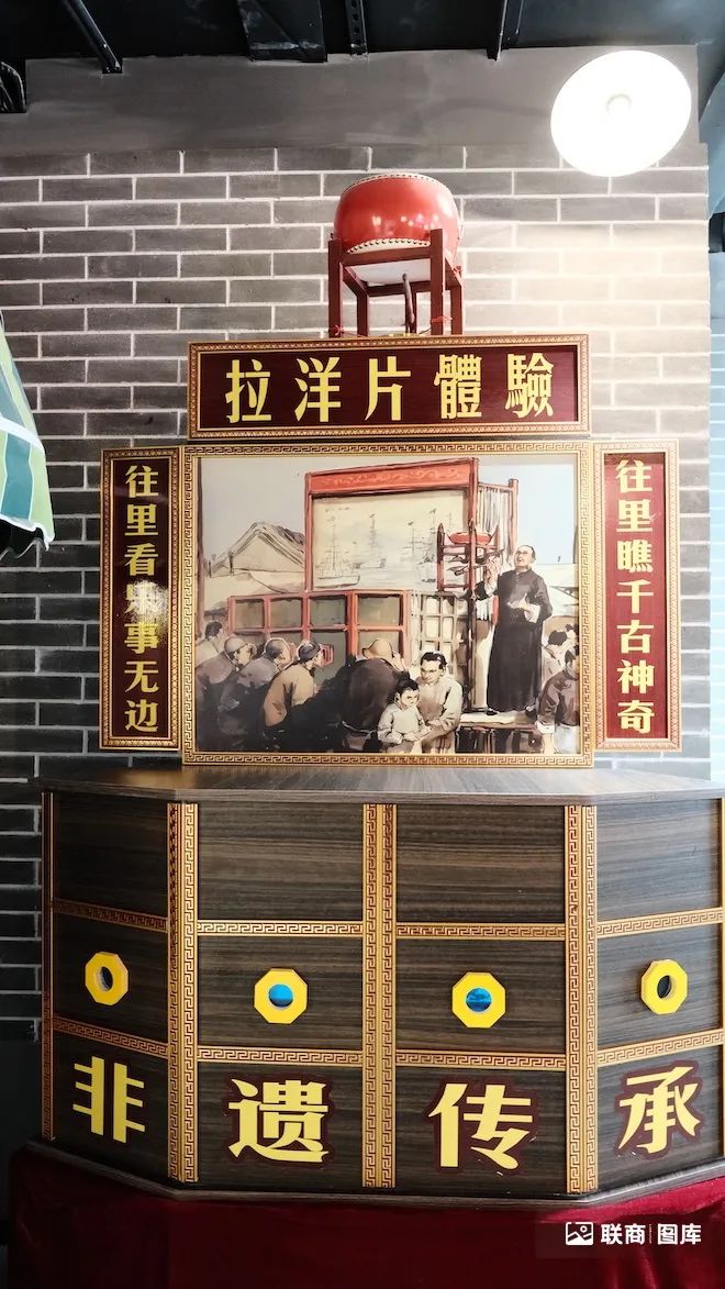 1918年国内陈列馆位于4楼,是改造后的重点,也是解决一切重点的复古空间。打卡的场景很多,比如拉洋片、老邮局、百乐门舞台、黄包车、缝纫机等民国小物件。