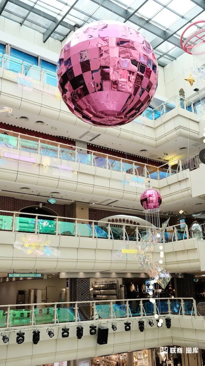 购物中心中的迪斯科灯球和彩带,将记忆拉回到以前的“蹦迪时刻”。