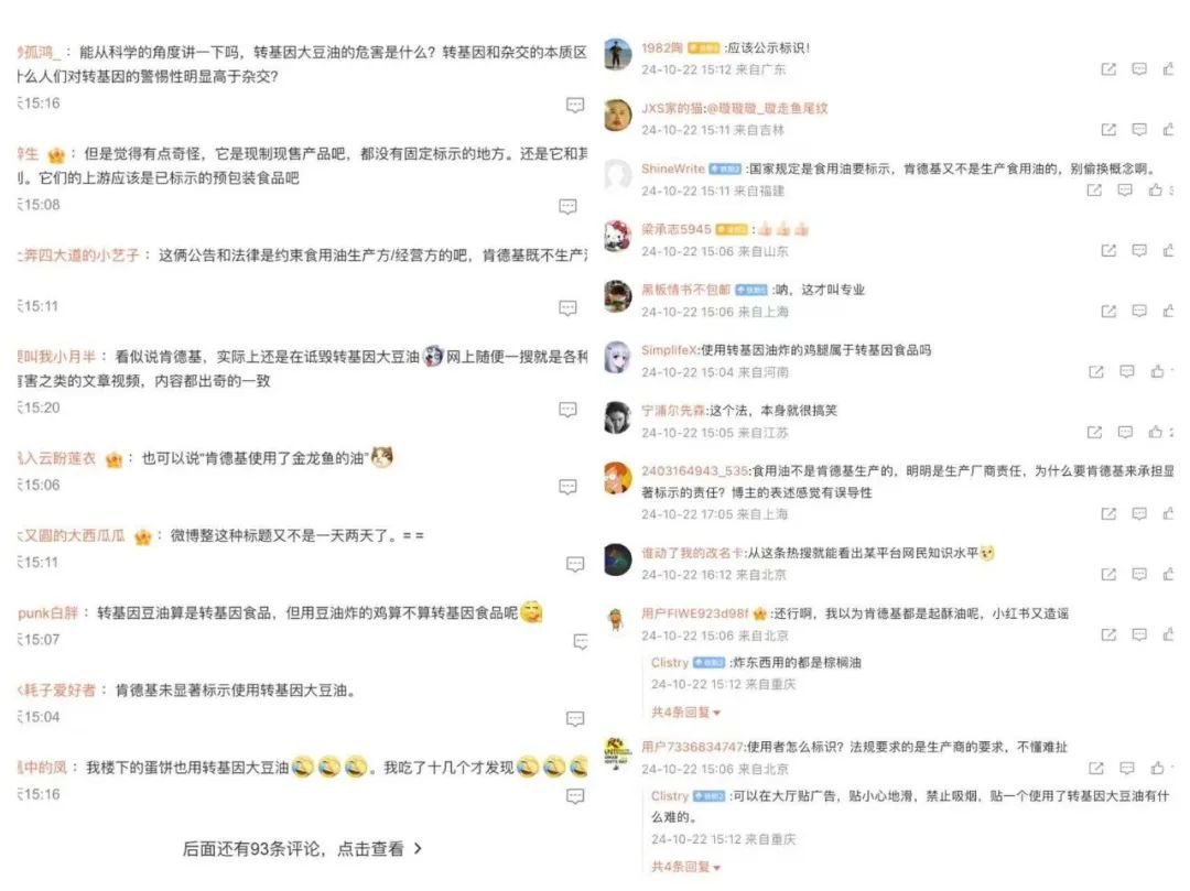 相当一部分消费者表示,中国没有明确不能使用转基因大豆油,而是需要标注。肯德基的违规行为是因为没有公布。也有消费者表示:“用户识别并不难。在大厅贴广告,小心滑倒,禁止吸烟。使用转基因大豆油有什么困难?”