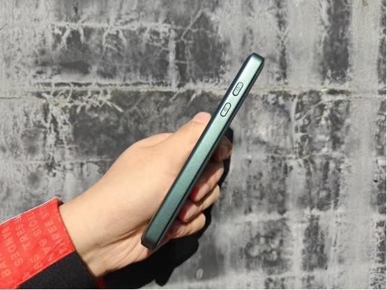 我们得到的产品是松霜绿色配色,黑色环形 暗绿色哑光机身 自然质感的设计让它看起来有点像旗舰机。