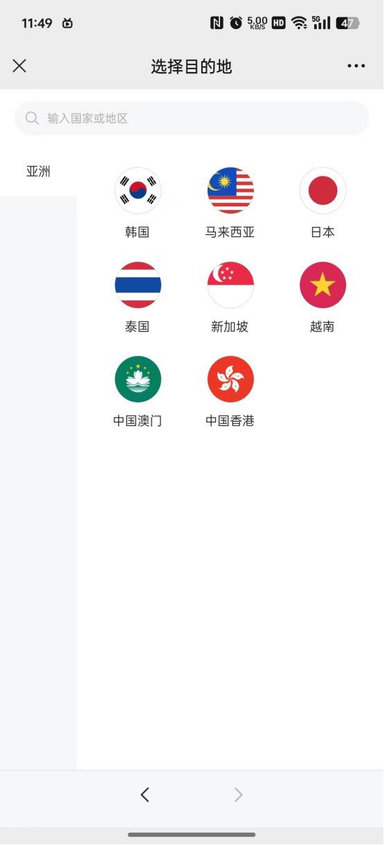 在微信官方账号中,我们可以看到当前订购的套餐流量、有效期和网络状态,以及韩国、日本、泰国、新加坡等。如果我们有旅行需求,我们也可以购买。 8 一个亚太国家和地区的国际套餐被转换使用。