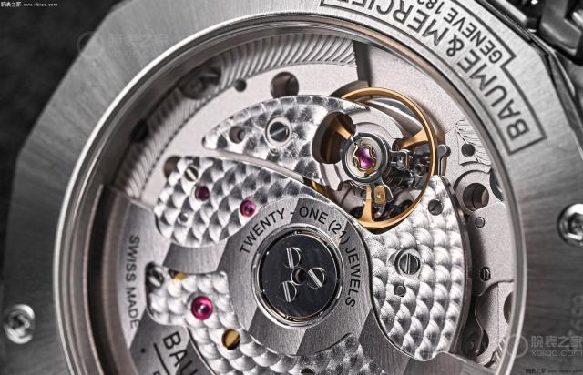 同时,名流 Baumatic 机芯自动陀有日内瓦图案装饰,上夹板覆盖鱼鳞图案,这在同级别产品中是非常罕见的。机芯采用硅游丝,减少摩擦,提高机芯的传动效率。这些性能不仅提前解决了佩戴者日常佩戴中可能遇到的麻烦(如磁性等)。),还为佩戴者节省了未来大量的保养费用。