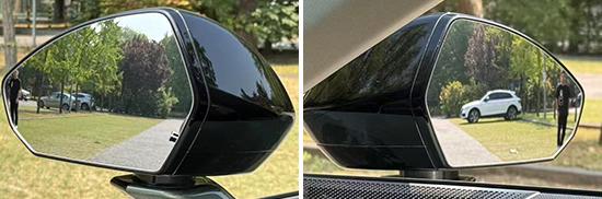 普通镜片用于评估汽车的左右后视镜。经过实际测量,左右后视镜的视野范围分别是 30.5 ° 和 24.7 °,处于同级上游水平,两侧视野盲点较小。