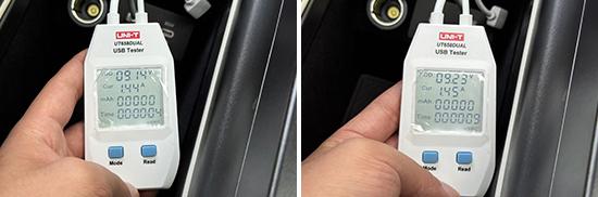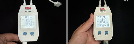 另外,我们是对的 USB 测试了接口的电压和电流,其中前排 USB Type-C 分别实现接口的电压和电流 9.14V、1.44A 和 9.23V、1.45A 上下。后排 USB Type-C 和 USB Type-A 接口的电压和电流分别是 8.98V、1.44A 和 8.97V、1.34A 上下。