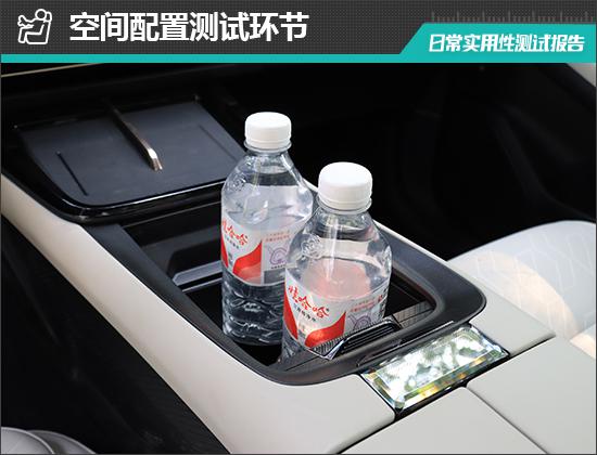 对车内使用空间的检测,仅针对前排触手可及的空间,不包括手套箱、中央扶手箱等需要启动的空间。测试方法是将以下所有固定物品放置在前排的每一个储物空间中,通过固定物品的放置状态来判断车辆储物空间的性能。检验选定的固定物体如下:2 一瓶常规大小的矿泉水, 大屏幕手机,1 支口红、1 个挎包、1 副墨镜、1 把折叠伞和 1 包装常规尺寸的抽纸。