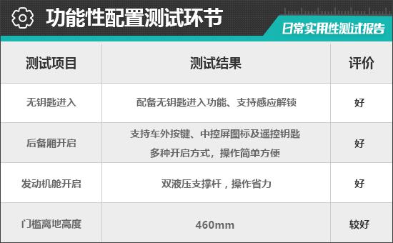 对消费者而言,门槛离地高度在一定程度上决定了上下车的便利性。根据实际测量结果,对汽车门槛离地高度的评估 460mm,达到同级别中游水平,驾驶员每天上下车比较方便。