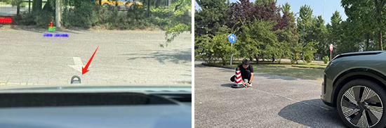 在后视线检测中,桩桶仍然固定放置,然后移动车辆,直到可以观察到桩桶的上缘。经过实际测量,后视线测得的距离是 在测试过的同级别车型中,12.855m处于上游水平。