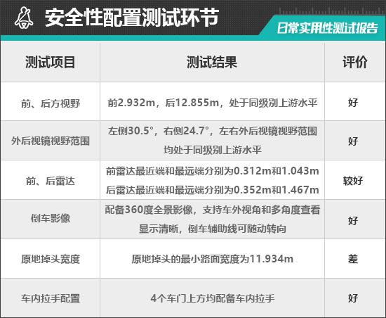 在汽车前后视线检测中,车内所有座椅均已调整到最低状态,检测到的数据与驾驶员正常使用时存在一些误差,仅供参考。