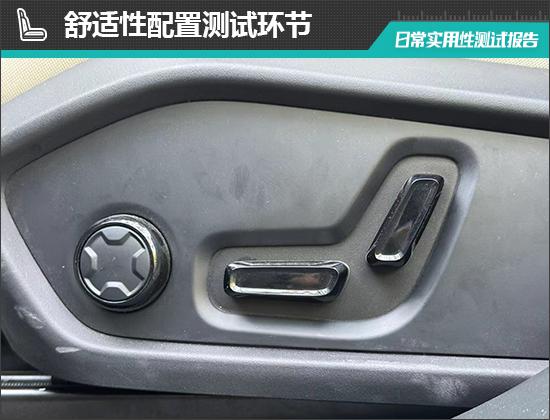 评测车子主 / 副驾驶座椅均支持电动调节,全车座椅均支持加热、通风、按摩功能,乘坐体验舒适。另外,主 / 副驾驶座椅也配备了 3 座椅记忆,方便性好。座椅各功能按钮布局合理,日常操作比较方便。