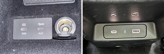在车里 USB 在接口方面,评估汽车前排的配置 2 个 USB Type-C 接口,后排配置 1 个 USB Type-C 和 1 个 USB Type-A 接口。与此同时,整车也配备了 2 个 12V 电源。