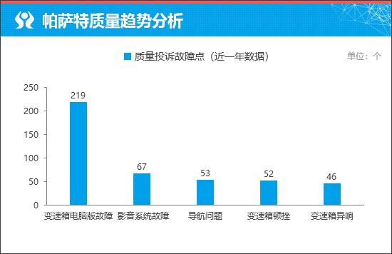 通过对帕萨特车型近一年的投诉数据的筛选,我们可以发现主要故障问题是“变速箱电脑板故障”,因为帕萨特。 Pro 变速箱没有升级,而是采用了和老款一样的变速箱,所以暂时觉得有上述问题的概率。具体情况如何,需要使用一段时间才能得出结论。