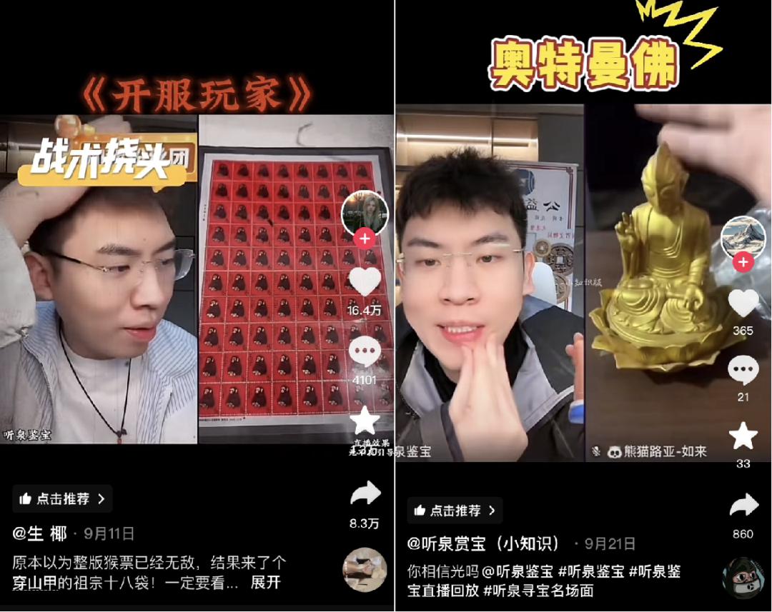 Tiktok博主“听泉鉴宝”因每天晚上与粉丝直播在线鉴宝而走红,在国庆期间迎来了一波流量爆发。由于其短暂停播、学历造假等事件,相关话题在微博获得了20多个热搜。他的鉴宝视频也在小红书、哔哩哔哩等平台迅速传播,引起了全网的热议。