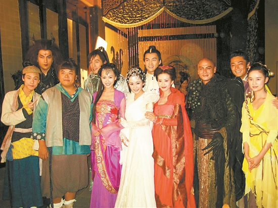 演员合影《仙剑奇侠传三》,前排中间由左到右分别为唐嫣、杨幂、刘诗诗。
