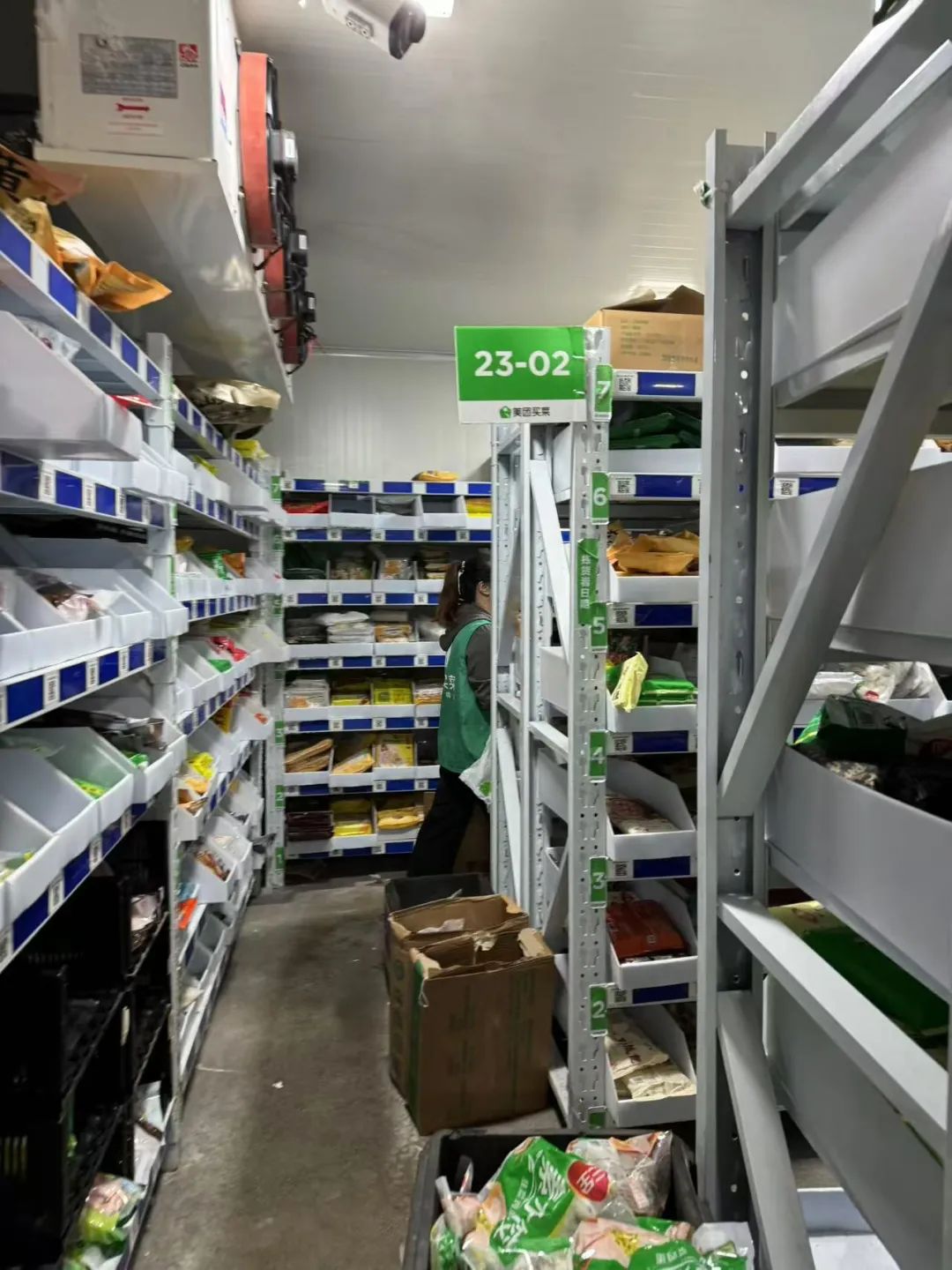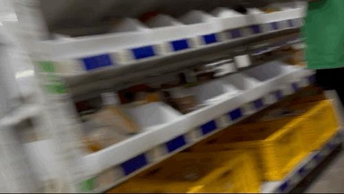 PDA上的标记非常清晰。每个人都需要根据上面显示的信息找到货架的具体层,按照规定挑选货物。如果是冷冻产品,会提示你加冰袋;如果是卫生巾等日用品,会提示你在外面多装一个袋子。但是因为格子太多,即使按位置找到货架,也要一个一个看。