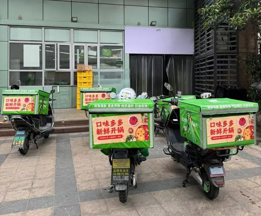 与普通超市不同,生鲜电商店通常窝在不显眼的商业区后面,位于居民区附近的偏远角落。招聘中介在试岗前提醒我,如果找不到店面,就仔细看看附近有没有绿色的店铺招牌,门口停着很多穿绿色衣服的骑手。
