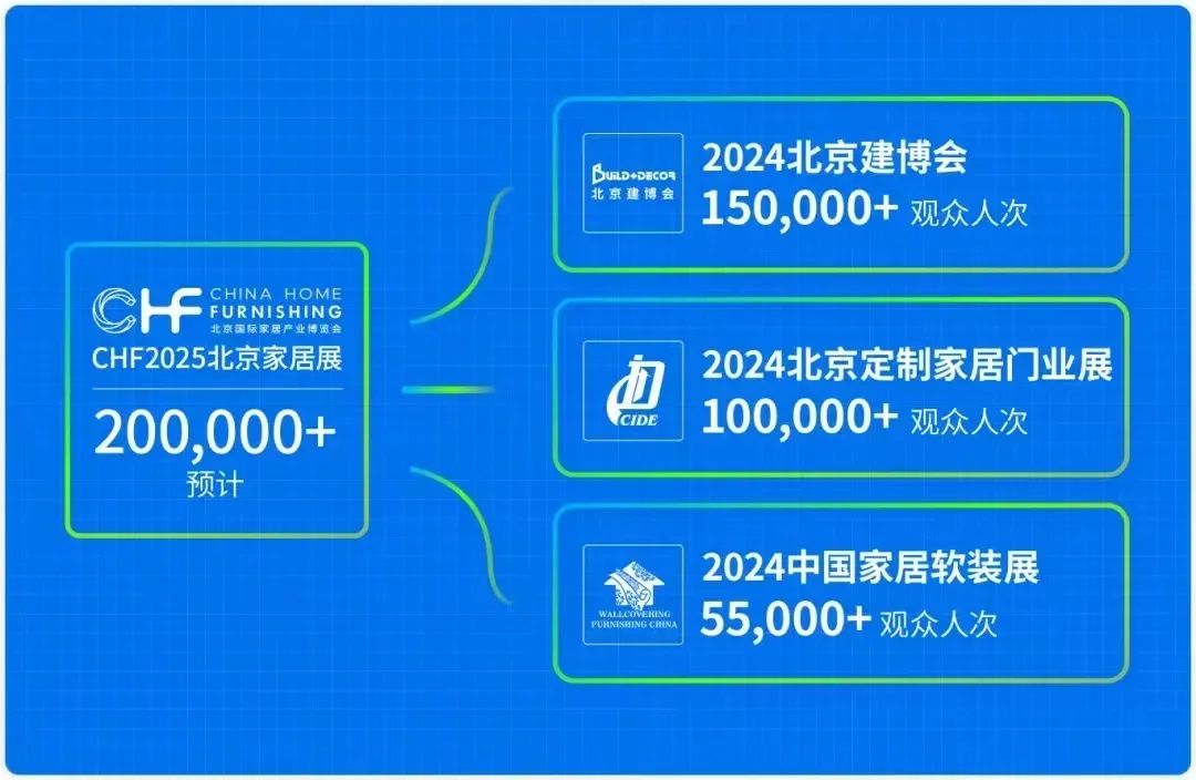 以北京家居展2025CHF比如整合北京博览会、北京定制家居门业展、中国国际软装展三大展览资源,完成家居产业链经销商全覆盖,获取20万经销商观众资源,为企业吸引投资提供充足的流量资源。