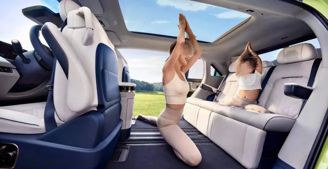 比如车主唤起这种模式后,汽车首先移动前排座椅,给后排更多的发挥空间;然后把车内的氛围灯调整成车主喜欢的风格。