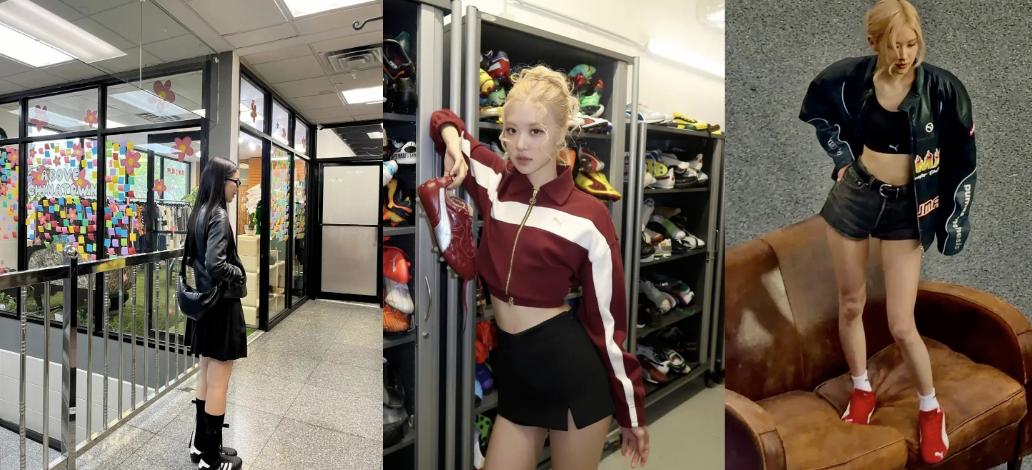 说到底,格斗靴看起来就是薄底鞋的变异。并且去掉格斗靴的超长帮面, Jennie 早些时候带火的跆拳道训练鞋没有什么不同;她的队友 Rosé经常穿PUMA跑车鞋也摆好了,可以玩连连看。