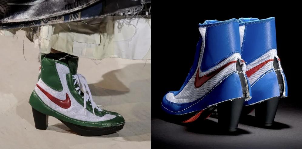 和COMME一样 des GARÇONS 与 Nike联名格斗高跟鞋,虽然在拳击台上可能没什么用,但也不妨碍女武神们风风火火地走出街道:不仅有拳击手的标志,还可以用高跟鞋踩一下。“响了就是好鞋子。”