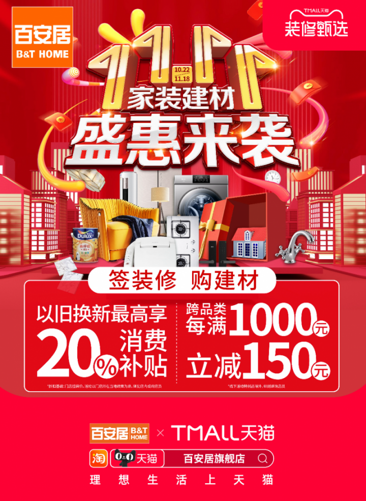 作为家装和家居行业的开拓者,百安居积极响应国家促进绿色消费的号召,将“新旧置换”补贴与双十一促销优惠相结合,大力打造家装和建材的福利活动,极大地激发了消费者的换新意愿,让客户分享“性价比”和“性价比”。