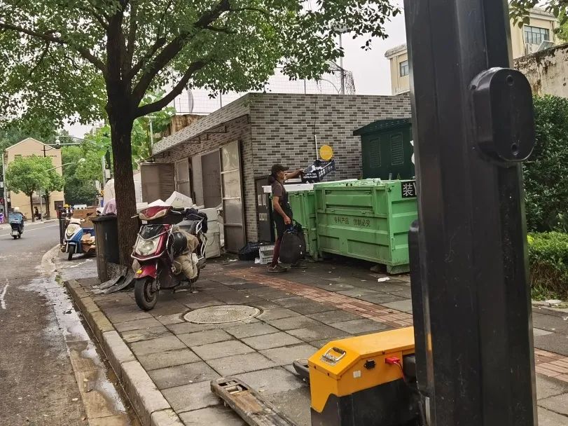 因为凤冈路上的店铺大多是水果蔬菜水产店,早高峰期顾客聚集在店门口进行选择和购买,导致人群密集,顾客停放更多的非机动车,容易导致通行不畅;另一方面,对面的垃圾箱是垃圾转运站,承载着周边商店、社区居民等群体的生活垃圾。垃圾量大,开放时间长。对此,江苏路街道联合江苏路派出所、江苏路市场监管所、当地交警大队、东联环卫等部门及相关工作单位实施联合整治,对垃圾箱房清洁规范配送、菜市场门责管理、非机动车停放、商铺雨棚整齐等进行了全方位路面环境改善管理。