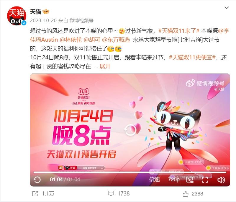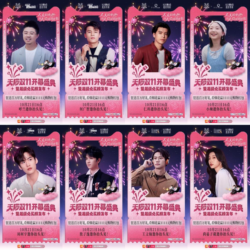 举例来说,以前的双十一是有晚会的。从2015年到2021年,天猫都举行了“猫晚”,与各家电视台最招牌的“跨晚”相比,其盛大程度更高。但是从2022年开始,“猫晚”就暂停了,今年随之而来的是“天猫双11开幕式”,节日的主体不再是明星、歌舞,而是烟火。除品牌代言人易烊千玺外,全场只有呼兰、何广智、仁科、周柯宇,降本程度可见一斑。