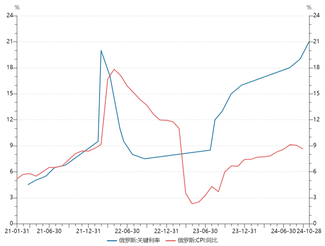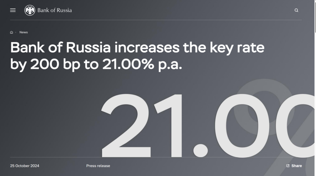 十月二十五日,俄罗斯央行宣布将200个关键利率提高到21%。那是央行年内第三次加息。