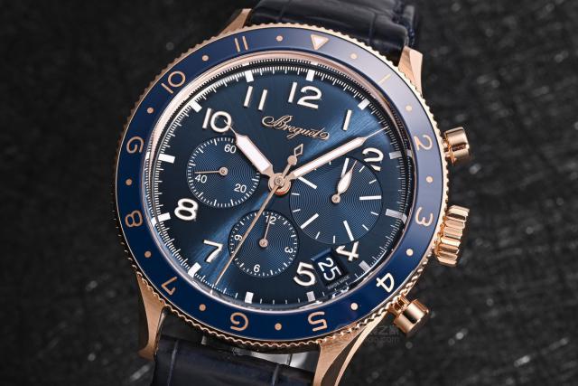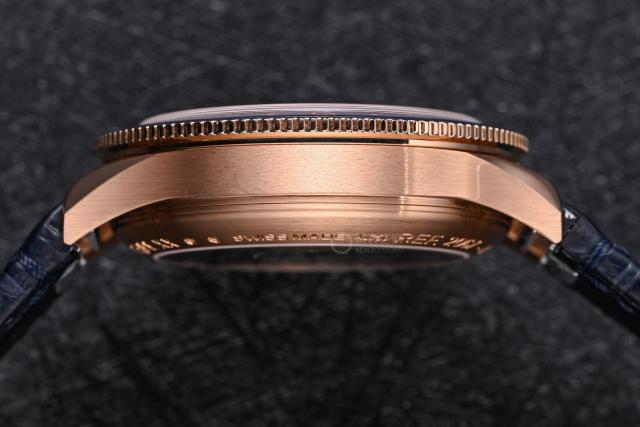 这款全新的 18K 玫瑰金 TypeXX 在贵金属的支持下,我觉得不只是奢华精致,而是觉得一切都是对的。不但宝玑的第一个瓷圈和表盘都采用了宝玑的代表性,而且与表款主题和玫瑰金非常搭配的蓝色,Logo 而且夜光时标也都改成了比较讲究的镶嵌式,尤其是表盘上呈放射状的拉丝打磨处理,其细致的触感就像丝缎一样致密。总而言之,这一切,都会让你深刻体会到这是一个宝玑应该有的样子。