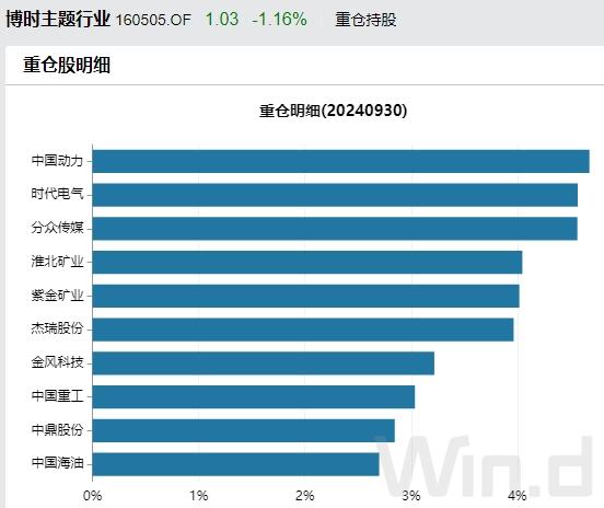 据 Wind 资料,博时主题产业混合基金 ( LOF ) 第三季度报告显示:该基金十大重仓股增加了中国动力、紫金矿业、金风科技、中国重工、中鼎股份。在这些比例中,中国动力持股比例 3.4%,是该基金最大的重仓股。。