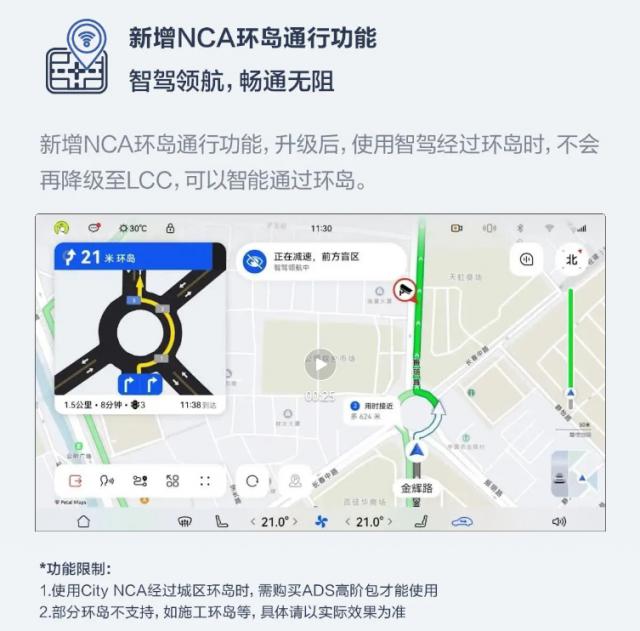 升级后,使用智驾经过环岛时,不再降级到 LCC,能智能通过环岛