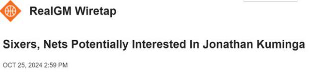 虽然主导权仍然掌握在勇士手中,但是其他球队已经无法抗拒这个新星。Fischer 表示 76 人类是对库明加感兴趣的球队之一。 76 球队在联盟内外和背后都明确表示,他们愿意为另一名球员买单,并且愿意花掉选秀权。 Fischer 还强调,76 为了最大限度地提高他们的夺冠机会,人队老板集团准备缴纳奢侈税。