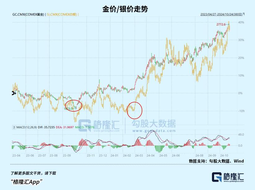 2023年10月初,黄金结束震荡,开始上涨的起点;而白银市场的起点,则是今年2月底。